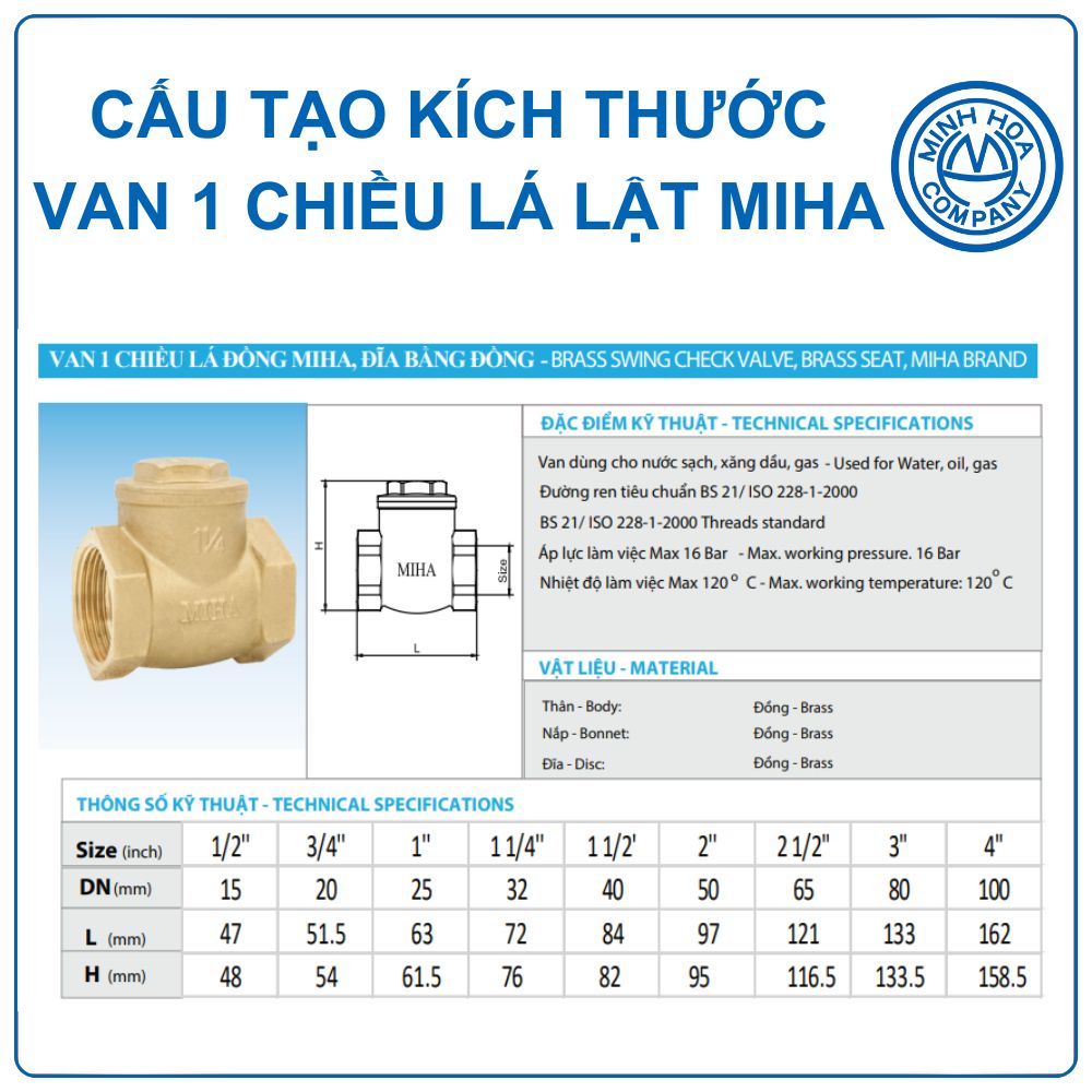 - Tên sản phẩm: Van 1 chiều đồng lá lật MIHA DN50