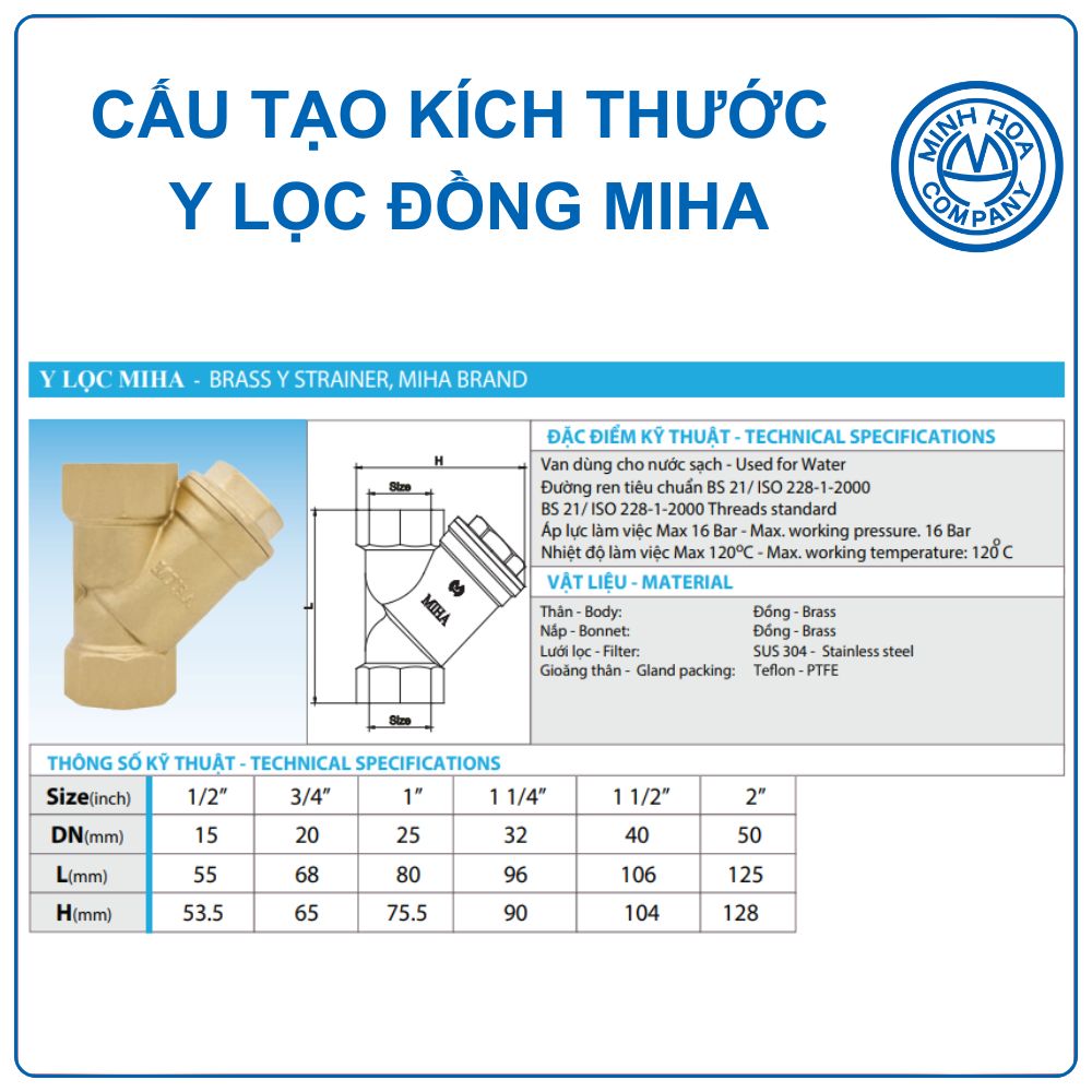 Thông số kỹ thuật Y lọc đồng MIHA DN40